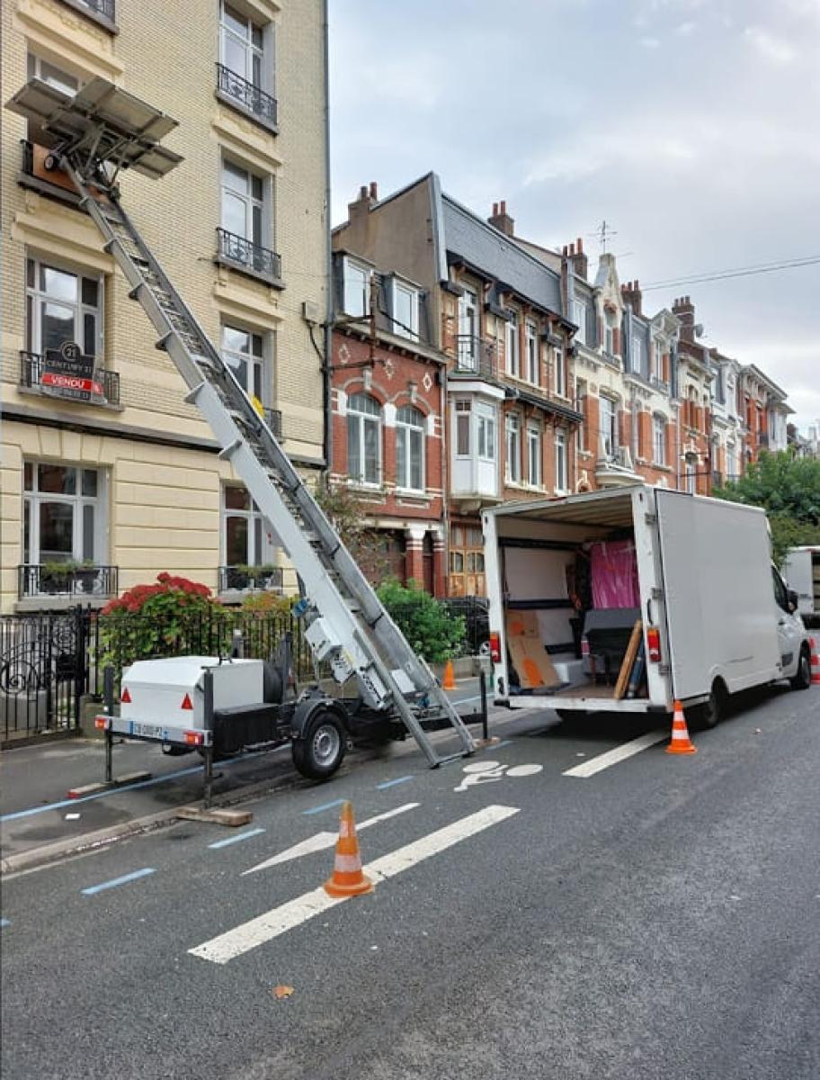 Quand un accès complique la manutention, on ajuste les moyens. Selon la configuration, on peut recommander un monte-meubles ou un renfort de portage, et prévoir une protection renforcée pour les meubles, l’électroménager et les objets fragiles.